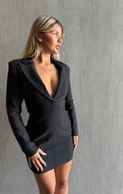فستان قصير مع جاكيت مصنوع من قماش مشدود