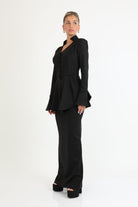 סט אלגנטי עליונית מחוייטת עם מחשוף וי כפתורים בחזית,חצאית קלאסית