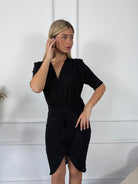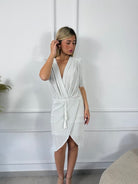 שמלה מיני מעטפת עם כיווצים וקשירה במותן