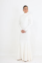שמלת ערב מקסי לבנה בגזרה מחטבת – אלגנטיות טהורה