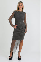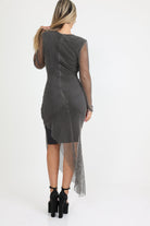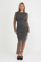 שמלה מבד משובץ אבנים מכווצת בצד אי סימטרי