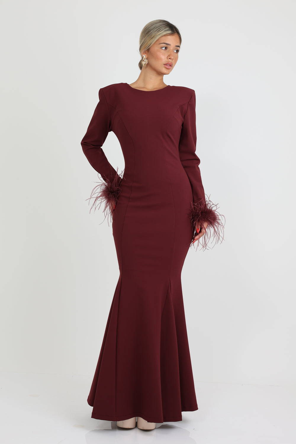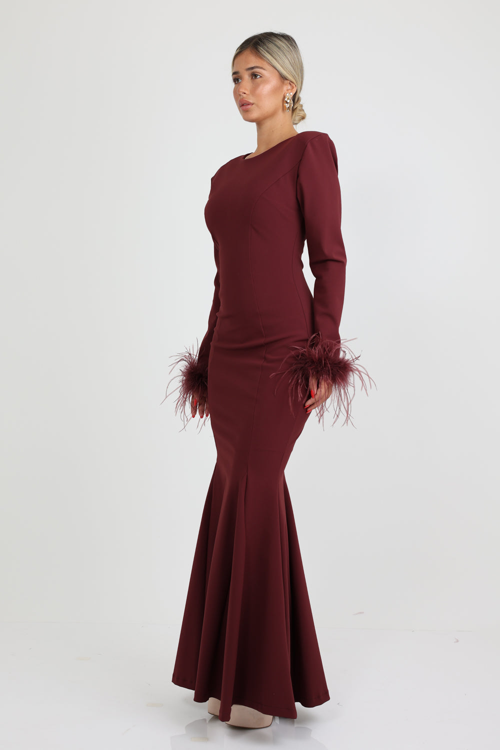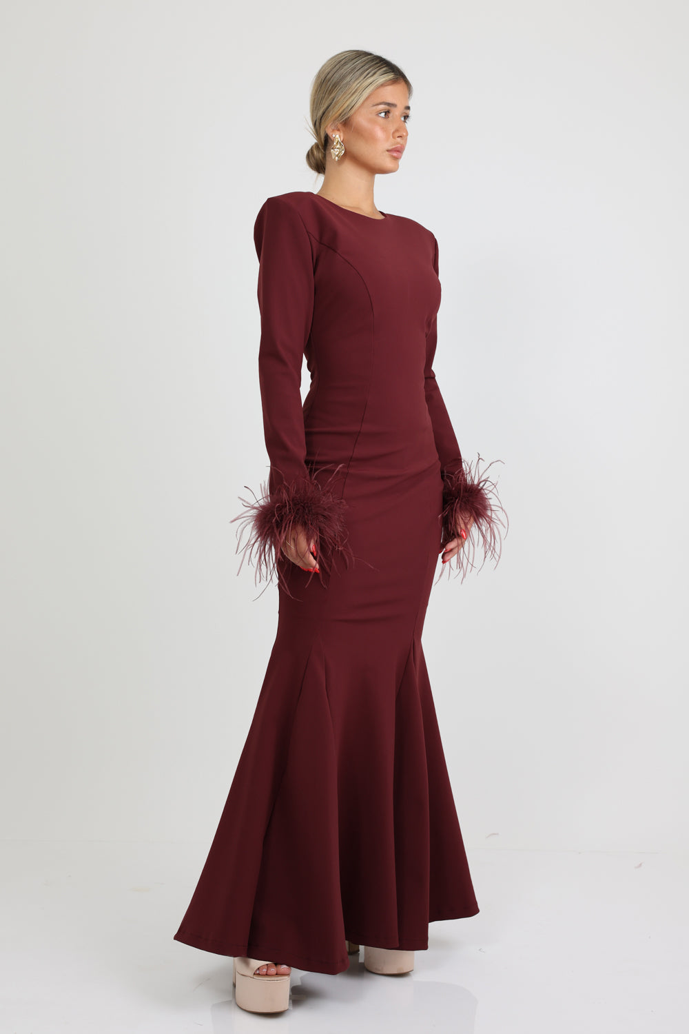 שמלה קלרה נוצות בורדו