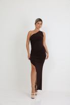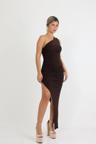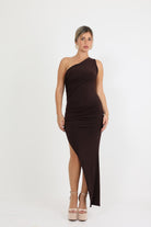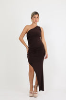 שמלה אי סימטרית כתף אחת שסע עמוק אלכסוני