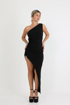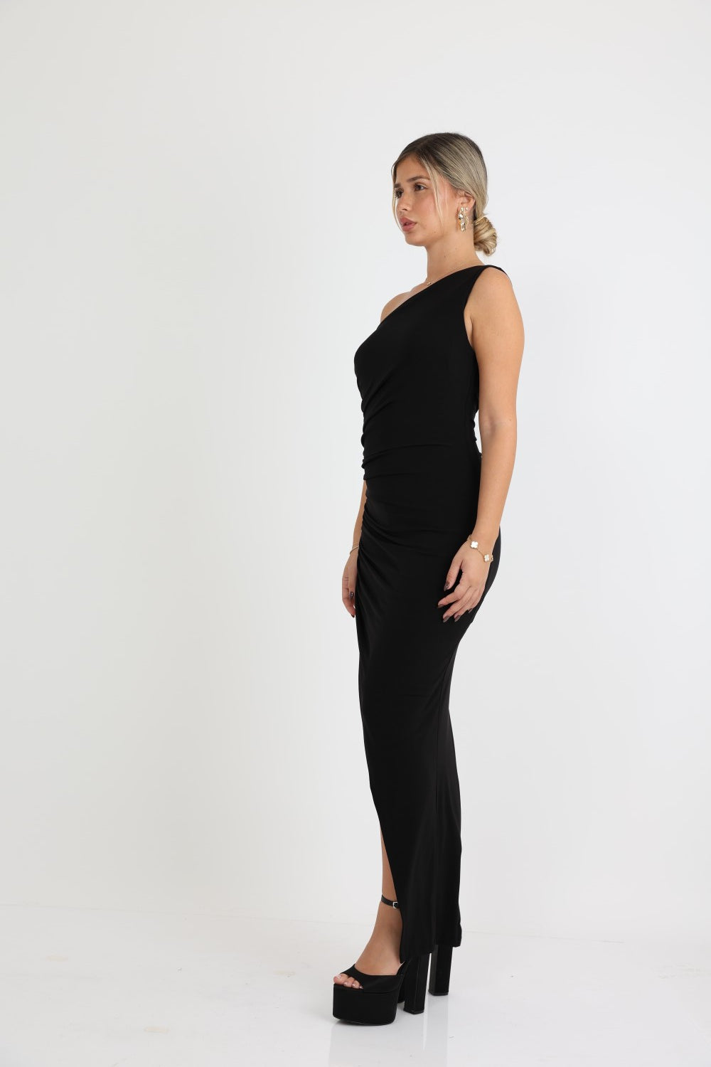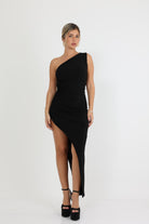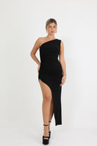 שמלה אי סימטרית כתף אחת שסע עמוק אלכסוני