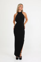 שמלה קולר שרשרת מקסי שסע עמוק אי סימטרי גב חשוף
