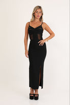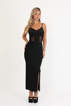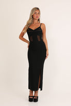 שמלת מידי קורסט שחורה עם שילובי רשת ושסע קדמי