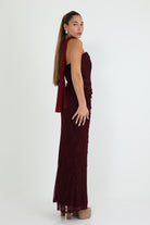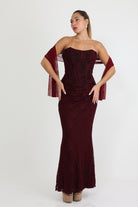 שמלה 2 חלקים חלק עליון מחוך עם סגירה שרוכים בגב,חלק תחתון חצאית ארוכה בצירוף צעיף