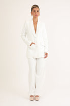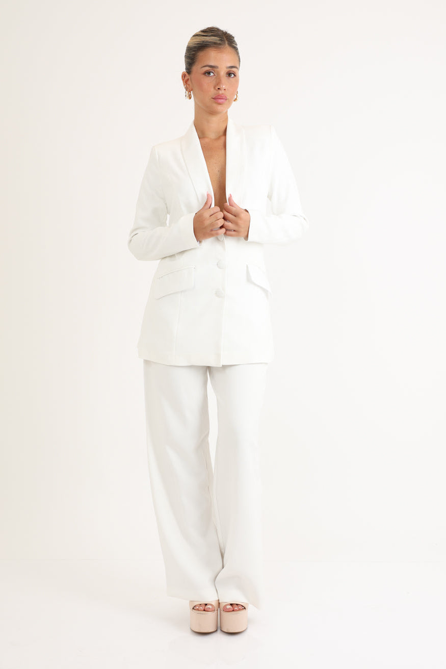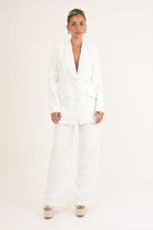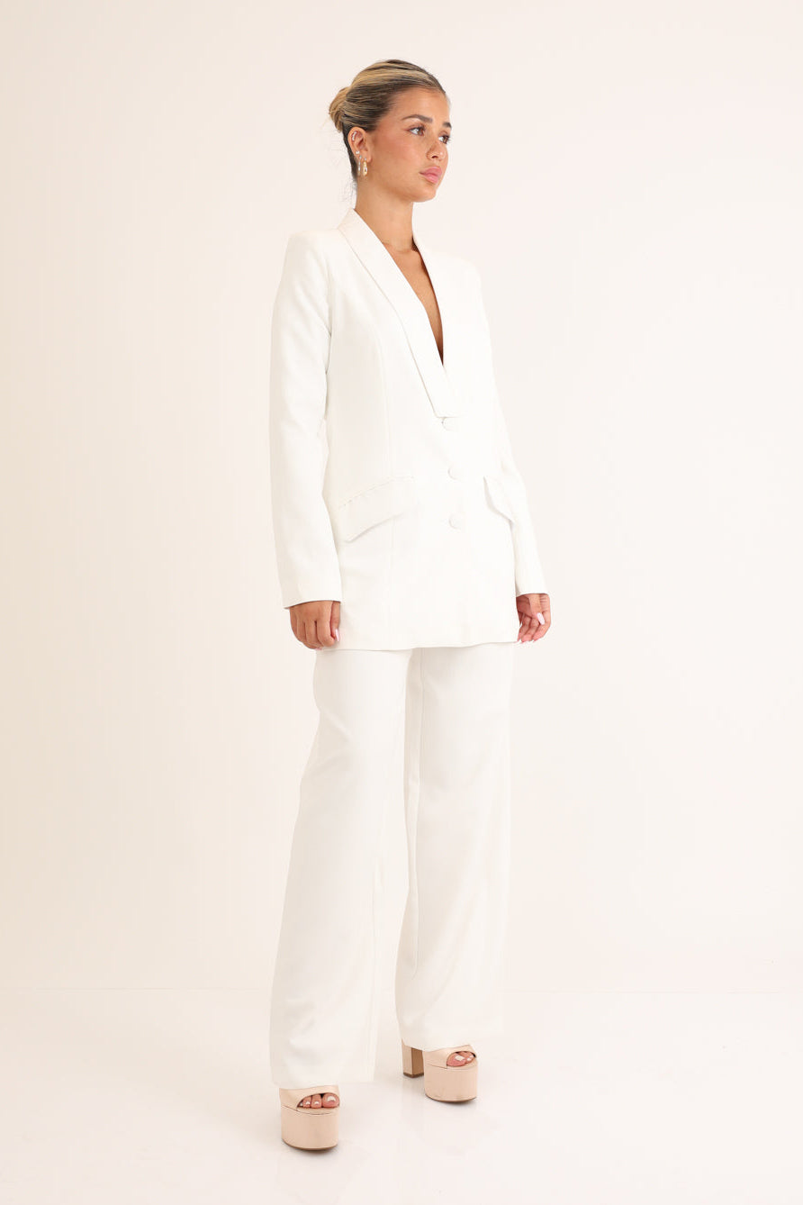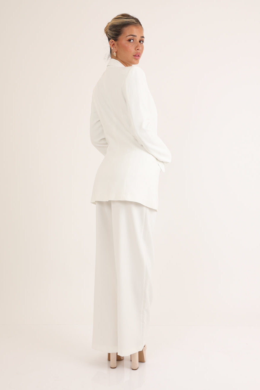 חליפת מכנסיים מחויטת בגזרת אוברסייז בצבע לבן נקי
