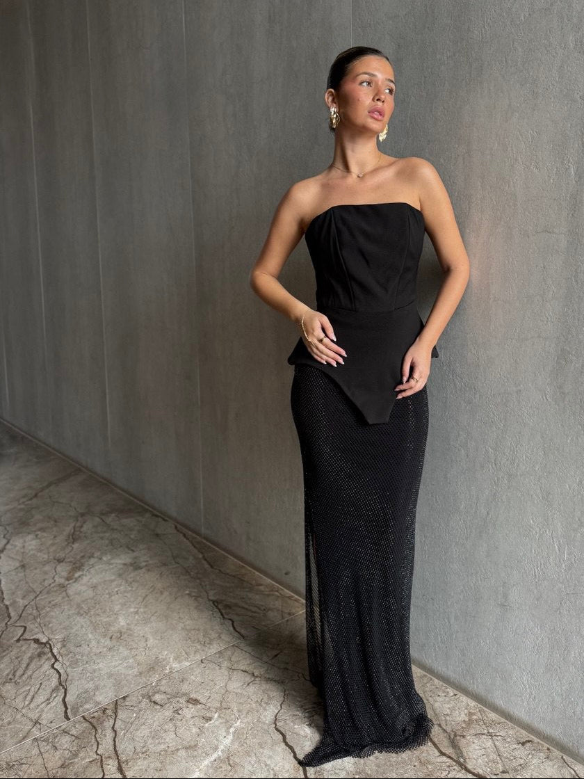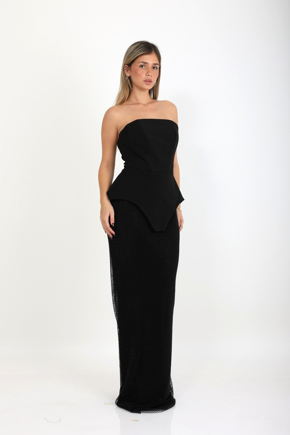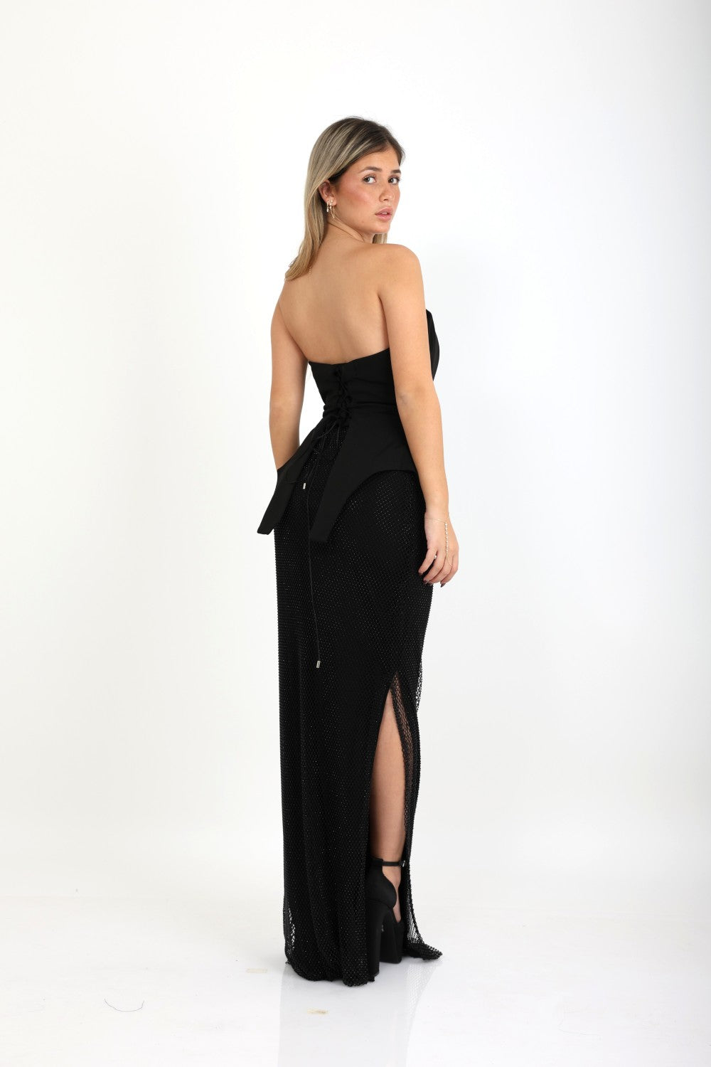 חליפה 2 חלקים מחוך וחצאית רשת אבנים