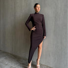 שמלה אלכסונית בעלת שסע עמוק