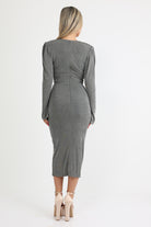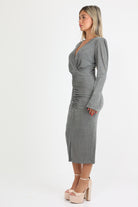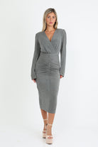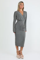 שמלה מעטפת אלגנטית מחשוף וי בחלק הקדמי מעוצב עם כיווצים מחמאים