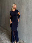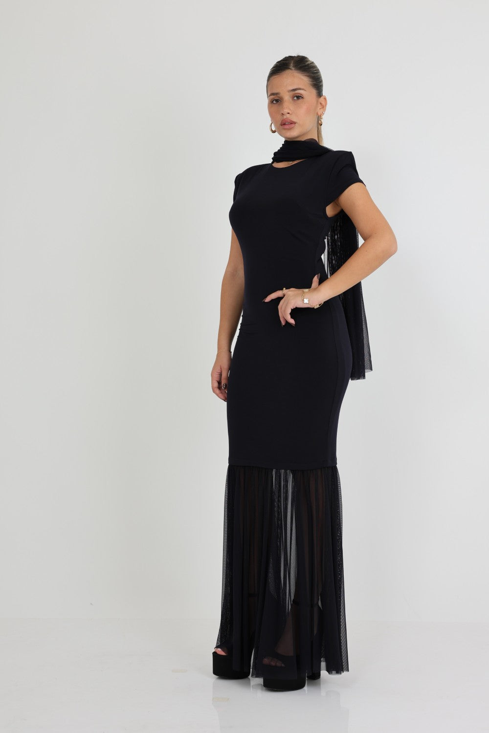 שמלה קלאסית ארוכה שיפון בחלק התחתון בצירוף צעיף שאל