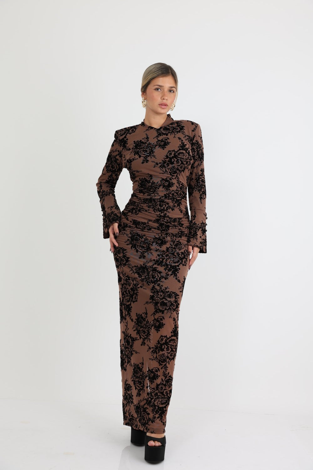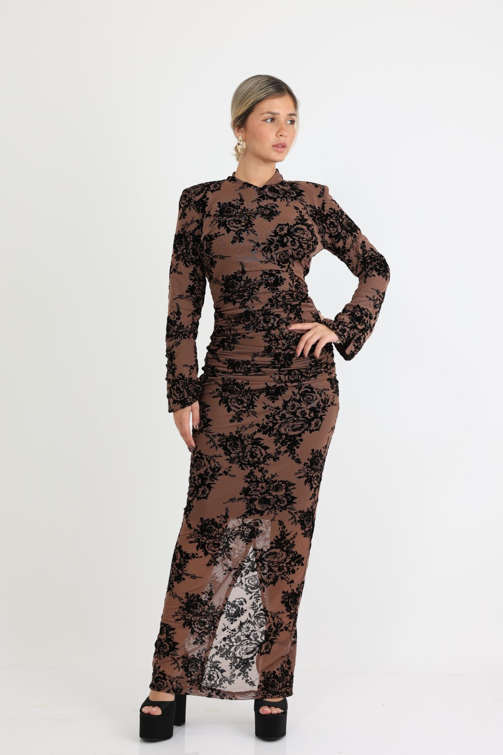 סוג הבד : שיפון לייקרה עם פרחי קטיפה