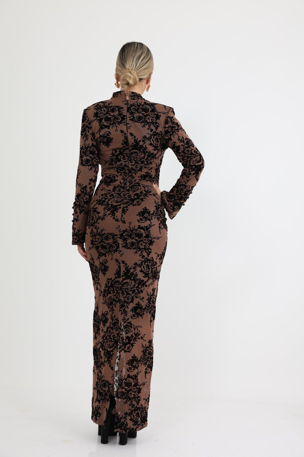 שמלה מקסי בעלת צווארון סיני עדין