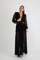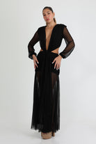 שמלה עם מפתח עמוק בחזה שרוולים שקופים עם חיתוכים