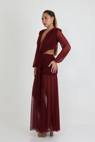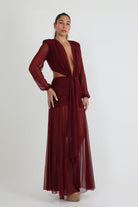 שמלה עם מפתח עמוק בחזה שרוולים שקופים עם חיתוכים
