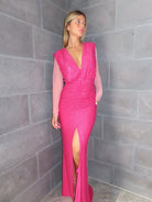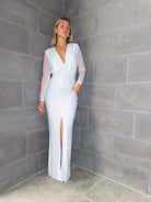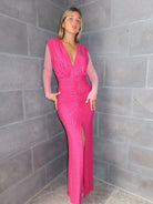שמלה ארוכה עם וי עמוק ושרוולים שיפון שסע עמוק מקדימה