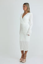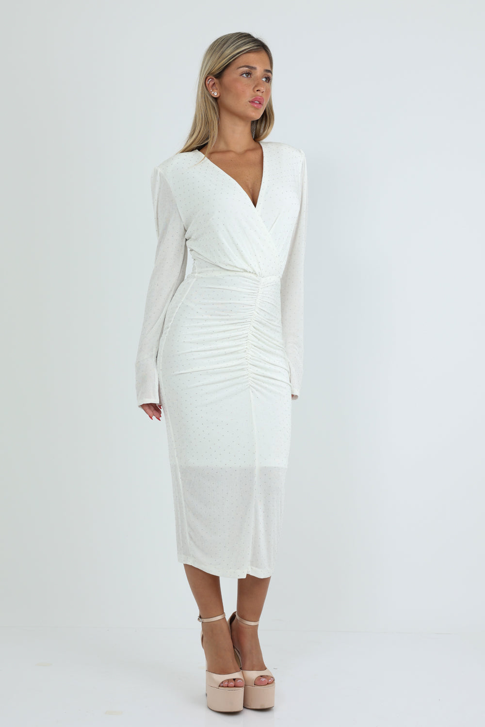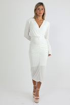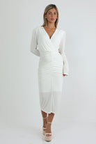 שמלה מעטפת אלגנטית מחשוף וי בחלק הקדמי מעוצב עם כיווצים מחמאים