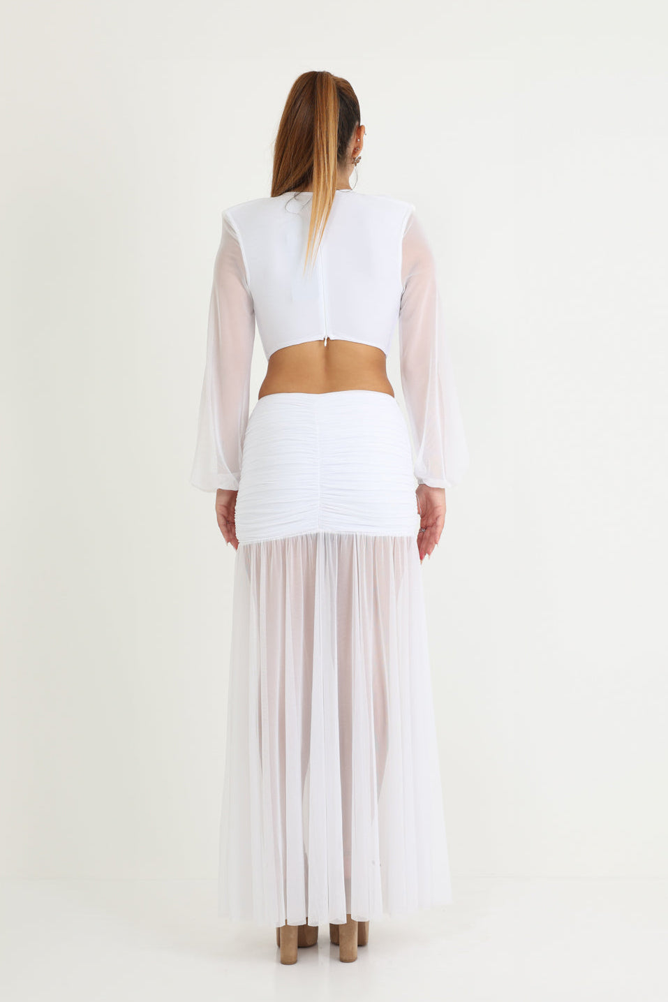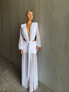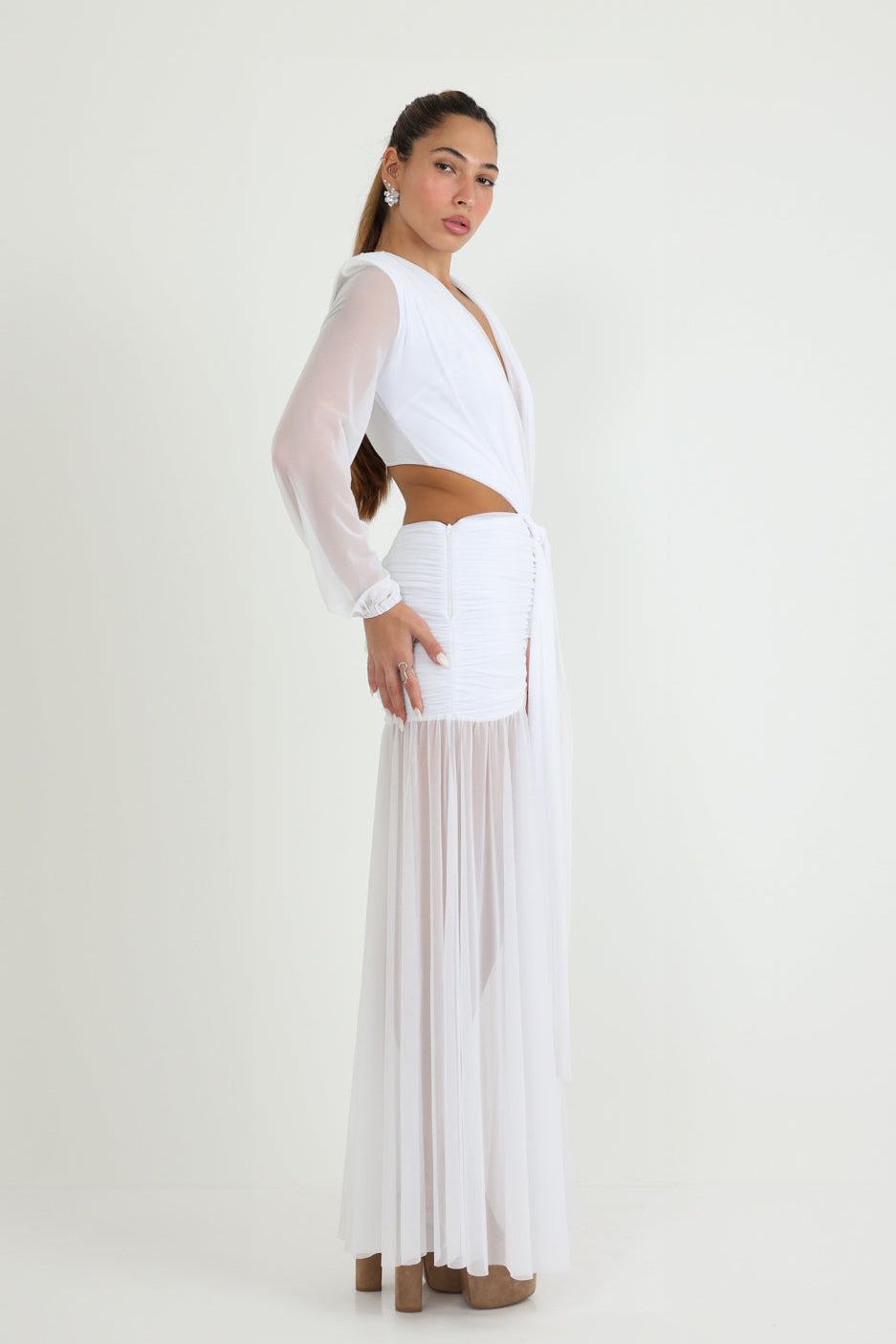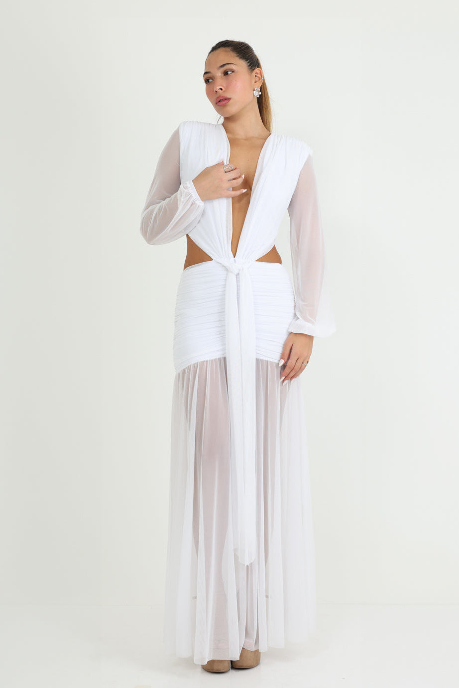 שמלה עם מפתח עמוק בחזה שרוולים שקופים עם חיתוכים