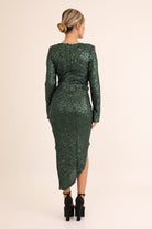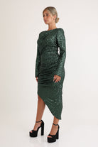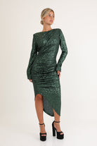 שמלה מנצנצת שרוול ארוך גזרה צמודה אי סימטרית