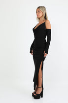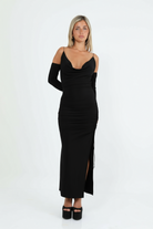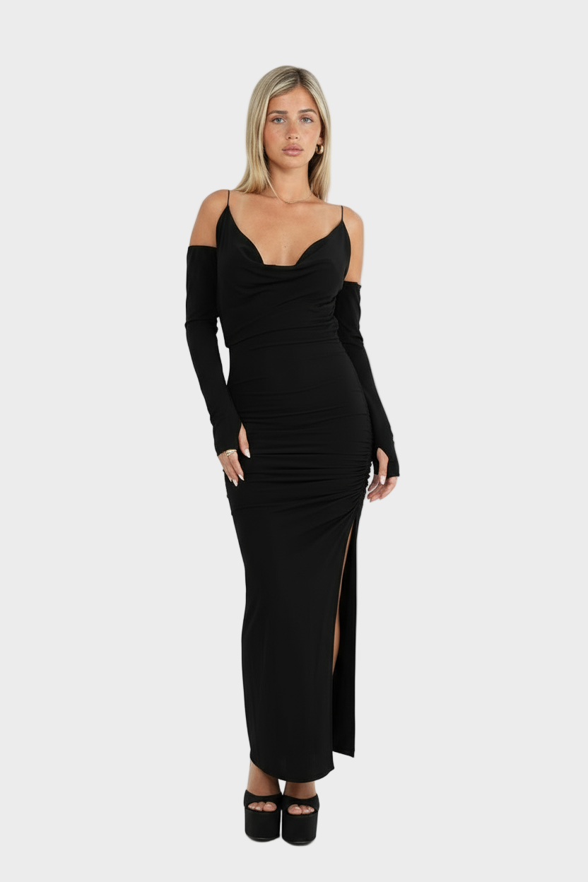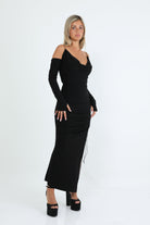 שמלה רבידה עם שרוולי כפפה ניתנים להורדה