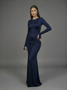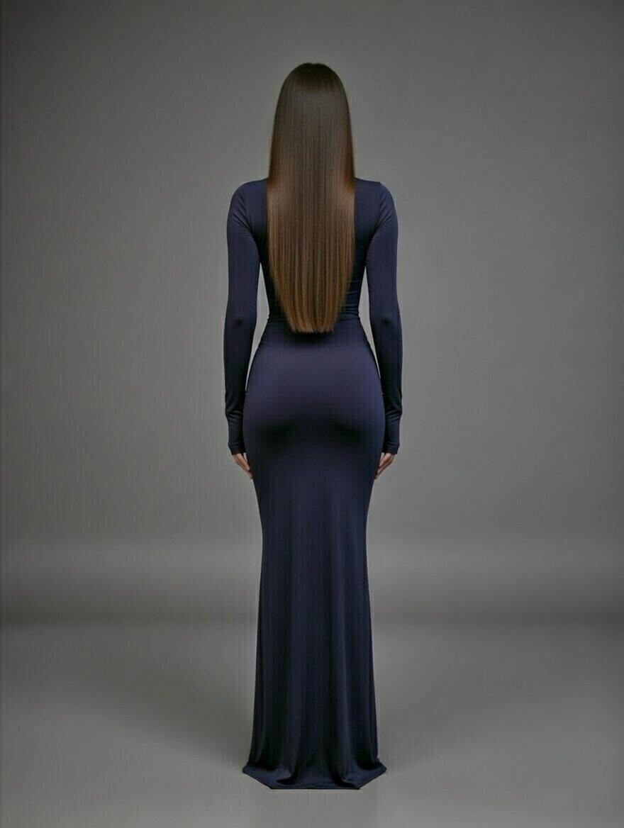 שמלת ערב מקסי אלגנטית בגזרה מחמיאה וצמודה לגוף, עם שרוולים ארוכים וכפפה ביד,מפתח עגול קלאסי. הדגם מעוצב עם כיווץ מודגש באזור המותן והירכיים שיוצר מראה מחוטב ונשי במיוחד. הבד הרך והנשפך מעניק תחושה יוקרתית ונוחות מושלמת – בחירה אידאלית לאירועים, ערב חג או הופעה מרשימה במיוחד.