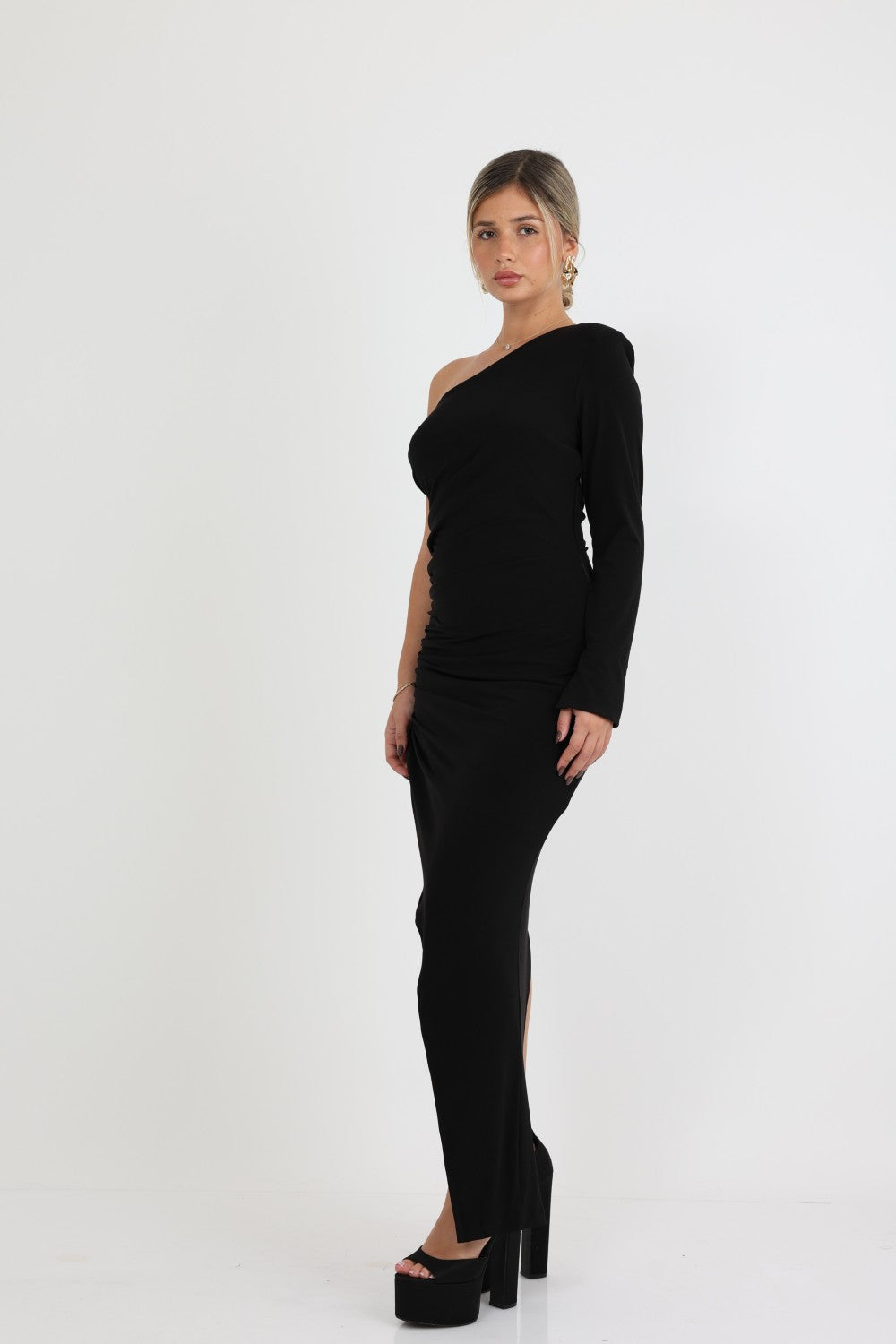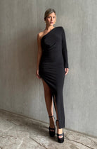 שמלה אי סימטרית שרוול אחד שסע אלכסוני